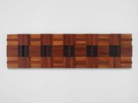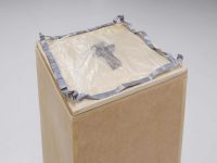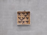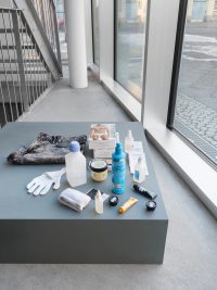 Living Spaces Tolia Astakhishvili, Beatrice Bonino, Patricia L. Boyd, Florence Carr, Wisrah C. V. da R. Celestino, Tony Cokes, Margaret Honda & Cezary Poniatowski Opening 1 December, 6 — 9pm 2 December 2023 — 27 January 2024 Living Spaces brings together eight artists whose work engages varying aspects—material and conceptual, lived and imagined—of domestic environments. In a range of registers, the show reflects upon how we shape, and are shaped by, the spaces we inhabit. How the pulse of life animates material environments, as if rubbing off by friction or symbiosis. Found materials—in the form of discarded floorboards, old carpets, borrowed curtains, cardboard boxes, the text of an architect’s biography, the floorplan of a childhood home, or the way light enters a bedroom window—are a common thread throughout the exhibition, as these are artists attentive to the composition, connotations and internal logic of their surroundings. Blurring the boundary between art and life, such practices insist upon art as a mode of paying attention. The constellation of works, including a number of new installations conceived for the exhibition, becomes something like a fragmented or fractured domestic scene, abstracted as if through a cracked mirror. As such, Living Spaces proposes an intrinsic value in shifts in perspective, while offering an expanded meditation on the old quip, if these walls could talk. Tolia Astakhishvili’s (*1974, Tbilisi, Georgia) practice is deeply invested in how space is constituted and interacts with lived realities. Employing structural interventions, found materials, and delicate drawings, she reorients existing architectural structures to draw out possible narratives and evoke imaginary histories. Astakhishvili’s work often implies a domestic space, while destabilizing notions of “home” as something safe or stable. Instead it becomes a fragile space where traces of violence and conflict remain close at hand. For Living Spaces, Astakhishvili sealed off part of the gallery’s subterranean floor to construct a nook-like vitrine, where glimpses of greenery, fragments of furniture and other items are partially illuminated as abstracted shapes. The vitrine embodies a sense of division and inaccessibility, the vaguely discernible, outlined forms both intriguing and troubling. Just as the assortment of objects presses up against the plexiglas, so too is there the impression that the space itself pushes back on its surface or pushes away its motley domestic contents. The structure’s black frames also echo the gallery’s ground floor windows, emblematic of how Astakhishvili’s interventions subtly unsettle and reconfigure their surroundings. Beatrice Bonino’s (*1992, Turin) work often takes containers like a found box, a ceramic vessel, or in looser terms, domestic space, as a starting point for her subtle play with texture, conditions of visibility and material connotations. As she moves between accentuating and destabilizing the act of containing, she also probes what it means to fasten—what that looks or feels like. The bows, pins, and locks that recur in her untitled sculptures (all works 2023) stand as various modes of fastening something, as well as flourishes that evoke the significance of the ornamental in alternative histories of abstraction. There is an uncanny quality to Bonino’s reimaginings as she treads a line between tapping into something deeply familiar and insistently strange, furthered by the way she employs materials seemingly against themselves: pinning cellophane, tying bows with lead or more broadly in asking what happens if rearranged remnants of vaguely banal household aesthetics are placed on a pedestal. The Paris-based artist holds a PhD in Sanskrit, and while her academic experience is distinct from her most recent sculptural practice, nearly fifteen years of studying ancient languages seems to imbue her work with a sense of piecing together forgotten modes of communication. Patricia L. Boyd’s (*1980, London) work probes the interdependence between the internal and external, often by enacting inversions or displaying negative space. Boyd pays attention to relationships between the interior and exterior of buildings and bodies, but also of institutions, in the broadest sense of the term. With both precision and an openness to chance, Boyd changes and expands the parameters of institutional critique by bringing an embodied, and often psychoanalytic approach to her work. While Boyd moves between sculpture, photography, writing, and video, photograms hold a particular place within her practice, and she has experimented with forms of staging this cameraless photography since 2015. For “Minutes, hours, or days,” 2021, large sheets of silver gelatin paper were exposed to ambient, nocturnal light—car headlights, the moon, illuminated neighboring apartments—from outside her fourth-floor apartment windows. The trees outside and the window frames are registered indistinctly, as the sheet of paper captures incomplete fragments of their forms. The series was conceived for an exhibition at the Kunstverein Munich, and Minutes, hours, or days II and V are exhibited again as part of Living Spaces. In both works, the photographic impression of the windows appears with a glitch-like stutter, an internal delay, caused by moving light from car headlights. Evocative of a kind of ghost photography, these photograms convey how present absence can be. Operating as both a surface and a threshold, both literally and symbolically, Boyd’s windows offer a mode of engaging how psychological and institutional spaces interact with and inflect one another. Florence Carr (*1997, Rutland, UK) repurposes parquet flooring in her woven assemblages. Carr tunes into the memories embedded in her materials, imagining what might have been imprinted upon these floorboards over decades of use. Sourcing her materials in classified ads that have taken her 