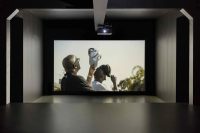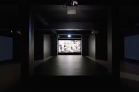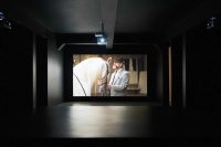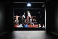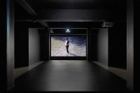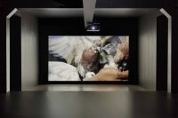 In the conditioning of animals, anthropocentric power relations become evident. Afsah’s works reveal the ambiguous character of the forces that operate at the center of these relationships. She directs our gaze to the moments when the bodies of humans and animals are marked by an uncanny closeness: the camera lingers on the aesthetic yet unnatural movements of a horse, focuses on the concentrated aggression of a bull, or follows the gazes of men searching the sky for pigeons performing falls.