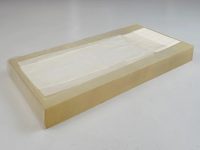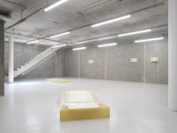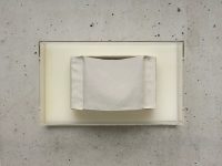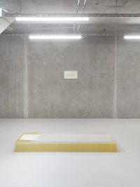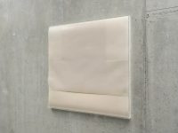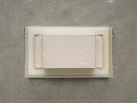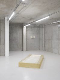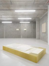 For her first exhibition at Galerie Molitor, Beatrice Bonino (*Turin, 1992) continues to develop her idiosyncratic visual language in a group of sculptures. Subtle acts of compression and juxtaposition transform old materials—boxes, plastic, vinyl, curtains—into something else. Bonino mines the tension between softness and a hard edge, responding to and seeking that moment when objects give pause. Formally, however, her constellations derive their ineffable quality from slight variations in tone and texture, rather than more marked contrast. As she moves between accentuating and destabilizing the act of containing, she observes the proximity of boxes and beds. Bonino also conceived of these beds in reference to the flat, often embellished stone or marble graves that adorn church walls and floors with the shape of the body of the saints they contain. Bonino imagines an abstraction of a bed—or an upside down box—in her two largest sculptures to date. Marx’s insistence on the interdependence between the abstract and the concrete could be informative, as the architect Pier Vittorio Aureli summarizes: “Abstractions are thus for Marx not an a priori category but the end result of analyzing the concrete, even though they are the starting point for any attempt to give a precise representation of the world. As such, abstractions dissolve the traditional antinomy between the concrete and the abstract, the tangible and the intangible, since abstractions are concrete.”