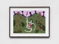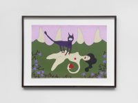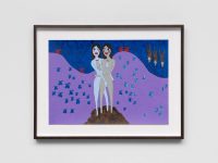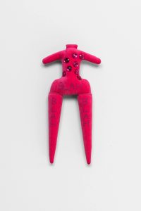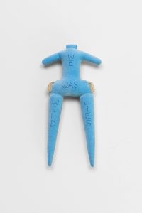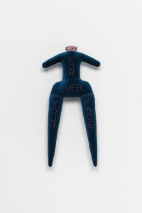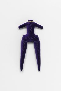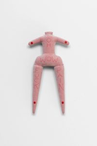 Debuting two new bodies of work—a group of plush Forever Doll sculptures and a sequence of paintings on paper from her ongoing Amelia series—the show stands as the latest incarnation of the visual language that Goring has been developing since the early 1980s. Returning insistently, compulsively, even, to these loosely female forms, Goring animates corporeal shapes—often contorted, mutilated, lanky limbed, or headless ones—with a charge that melds violence and vulnerability. Such questions of recurrence permeate Chronic Forevers, in which the temporality of trauma is made manifest: memories held in the body, personal histories re-lived and reimagined. Goring’s work processes a swirl of input including experiences of love, loss, addiction, depression, single motherhood or living within the welfare state, finding physical form for how this felt. Her work troubles boundaries between interiority and exteriority, as her figures wear their hearts—or their internalized oppressions and emotional turmoil—on their sleeves. Goring’s work is concerned with the conditions of its own production, which have been informed by the UK’s current cost of living crisis, just the latest iteration of decades of systemic violence enabled by ruthless neoliberalism. The sense of urgency in Goring’s work derives from making art both despite and because of these circumstances, which also dictate her material process. Goring hand-stitches cheap fabrics and other found materials, often works with free online software, ballpoint pen and paper, in her home studio. Austerity’s relentless brutality has been, on the one hand, another chronic forever in the London-based artist’s life and work, but the temporality that her work proposes is also a kind of way out, or a way through, its charade of linear progress. Entangled in poetry and dark humor, Goring’s work speaks to the deeply nourishing quality of making. A communion between artist and object is present in these works, which are palpably extensions of herself. Such intimacy extends to the symbiosis of the alter-ego Amelias or the chorus of the dolls. In a giant image macro (a meme format that garnered Goring cult status in the online alt-lit scene in the 2010s) in the gallery’s front window, a band of text across Goring’s face reads, I Know Empty. This also means release. Chronic Forevers marks Penny Goring’s (*1962, London) first exhibition in Germany and with the gallery, following her widely-lauded retrospective at the ICA in London last year. Goring’s video-poems Please Make Me Love You (2014) and Fear (2013) will be screened in the Gallery Weekend Festival at Studio Mondiale. Her work is also included in the Women in Revolt! exhibition upcoming at the Tate Britain this fall. CHRONIC FOREVERS you are in for it you are with big structural emergency sticks in faithless divorced shit storms all is for austerity nothing never who mourns a landscape your grey witness liquid velvet is Amelia's drug death torment in violent centuries as the money is sky you sit ruined weeping liars they are greedy eyes sleeping face falling scared and bleeding and one Amelia the dreadful might be releasing chorus of teardrops dripping lurid forever intimacy visions screaming and severed hairy puddle crawling in too deep over heedless legislation plumb the cold distance from desperation danger selling giant fake future flowers Amelia's crimes laughing who is blue Amelia's promises big as theft is a sky releasing golden cakes sainted icons emotive epiphany blissful Amelia in the trees beside you with kisses for psychedelic starving fuchsia wielding shiny daggers the abusive summer in plagues of thunder aching words two dead faces boiling it's on and on broken are the Amelia years as hell all arms eyes are cursed and Amelia over and over deep trauma Wi-Fi weeping being Amelia.