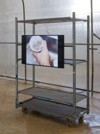 The daily drudgery of woman’s work is the throughline in the videos of the German artist Margaret Raspé, who died last November at the age of ninety. Finding herself the sole caregiver for her three children after a divorce in the 1970s, Raspé dealt with the fact that housework left her no time for making art by attaching a Super-8 camera to a construction hardhat so that she could film her daily hustle and bustle. Augmented by this prosthetic device, she won her emancipation as an artist and a woman, able to expose and transcend her condition as a “Frautomat” (automated housewife), a term she coined to describe a lifetime circumscribed by the mechanical and repetitive daily tasks necessary for human sustenance, such as, for example, whipping cream, doing the dishes or slitting a chicken’s throat and cooking it. Although she never explicitly associated herself with the women’s movement, her artistic practice during this period can be read in light of the critical thinking of materialist feminism, with its denunciation of the double exploitation of women, in the workplace and through their unpaid domestic labour.