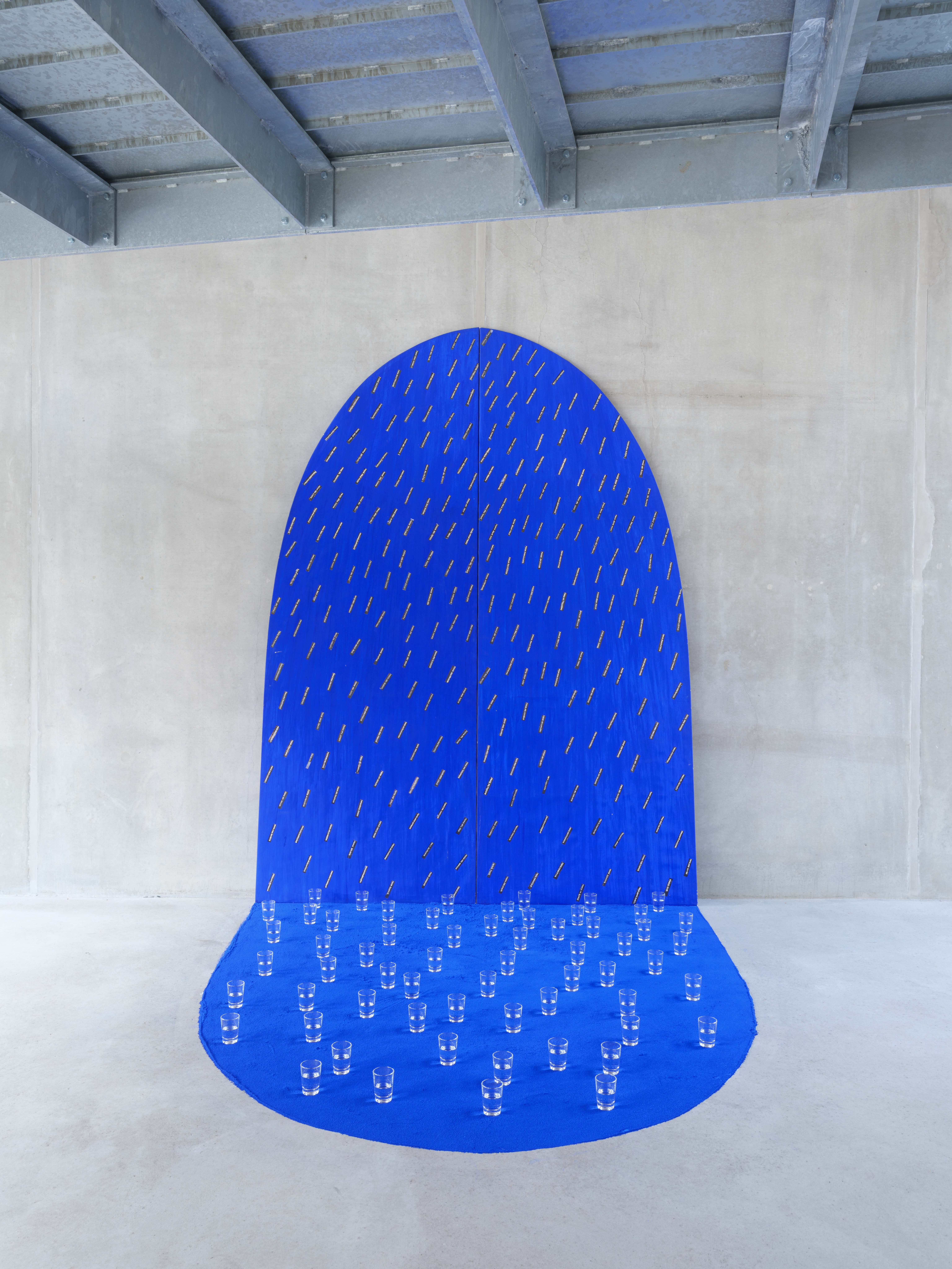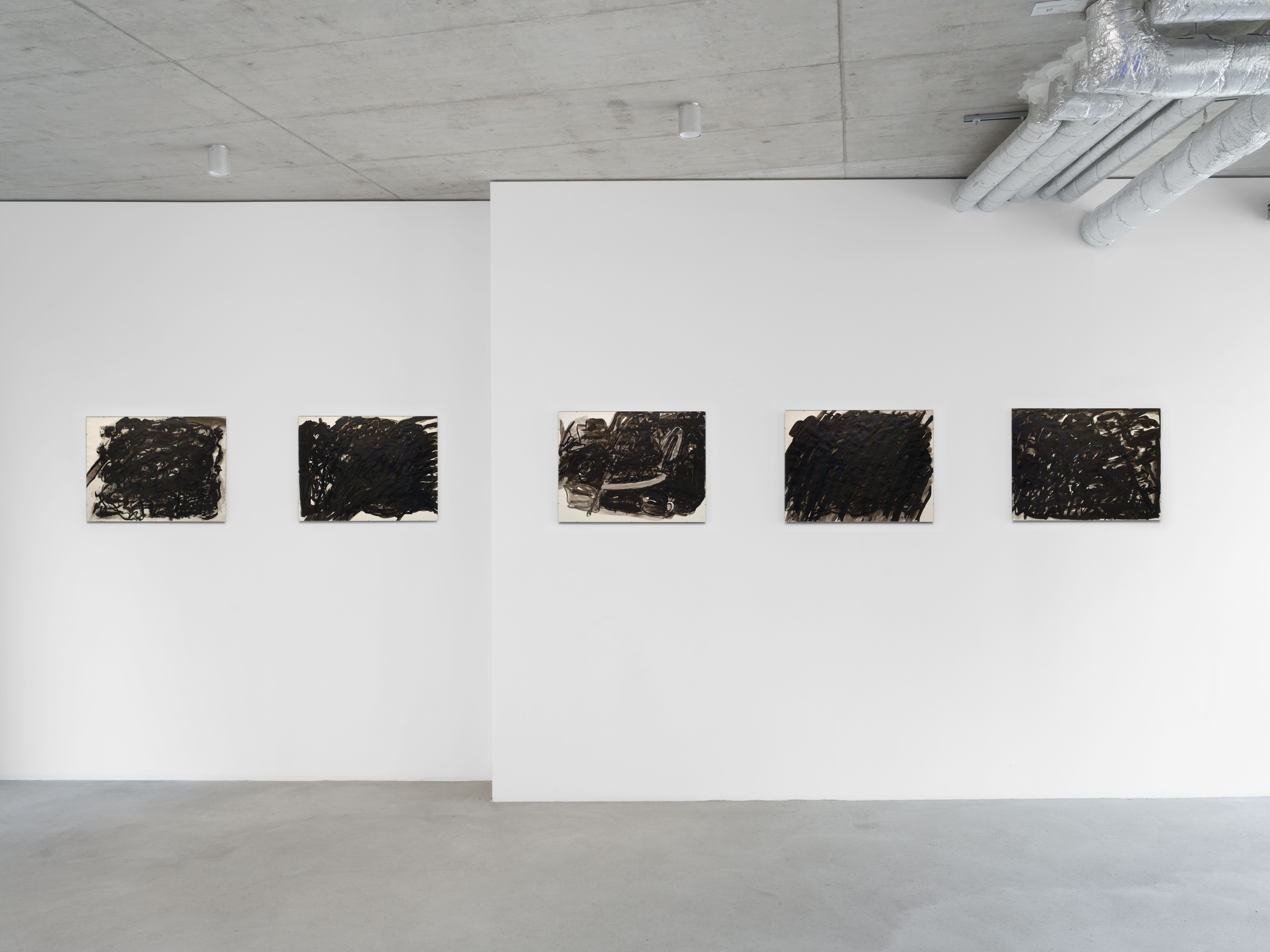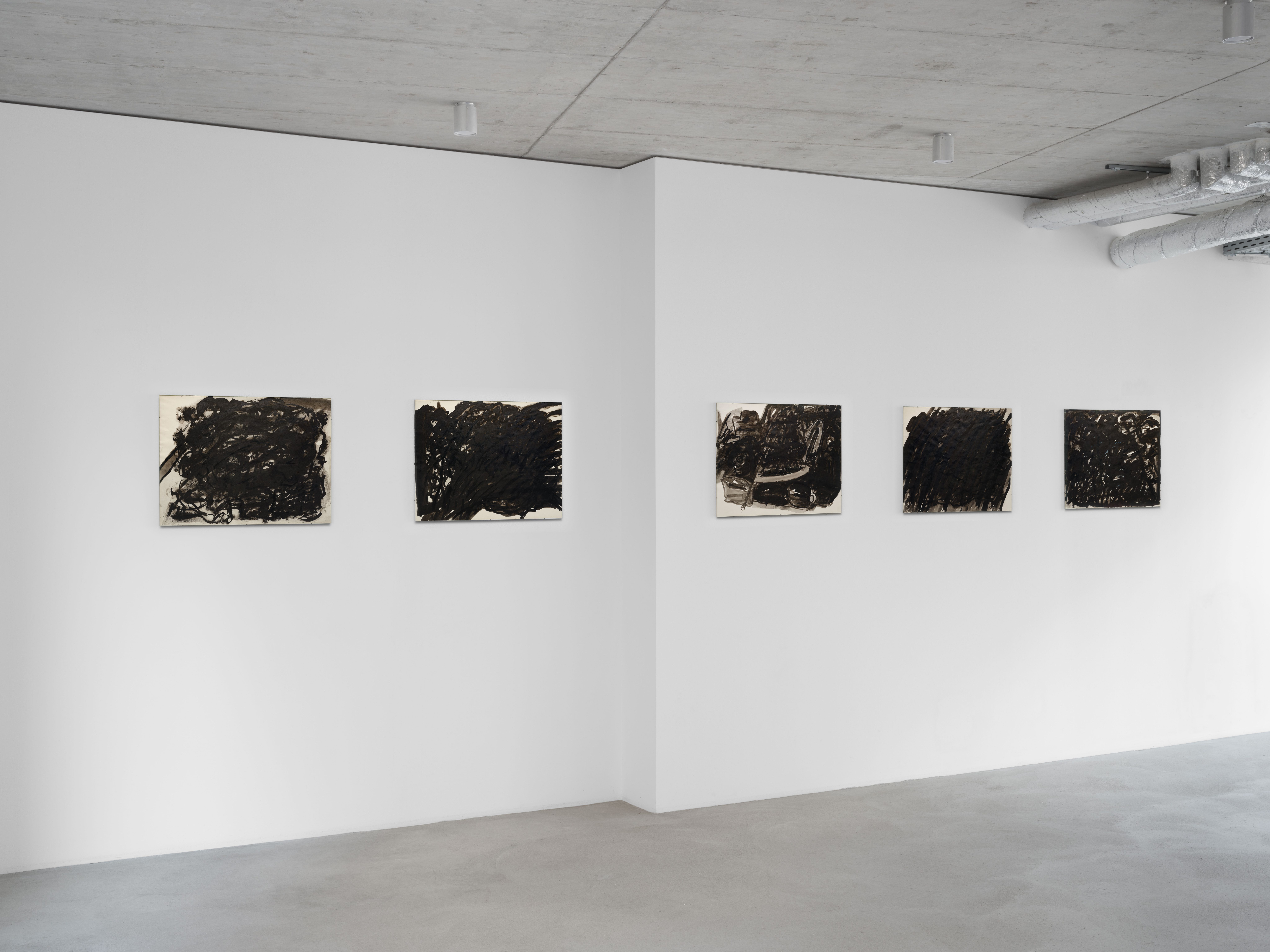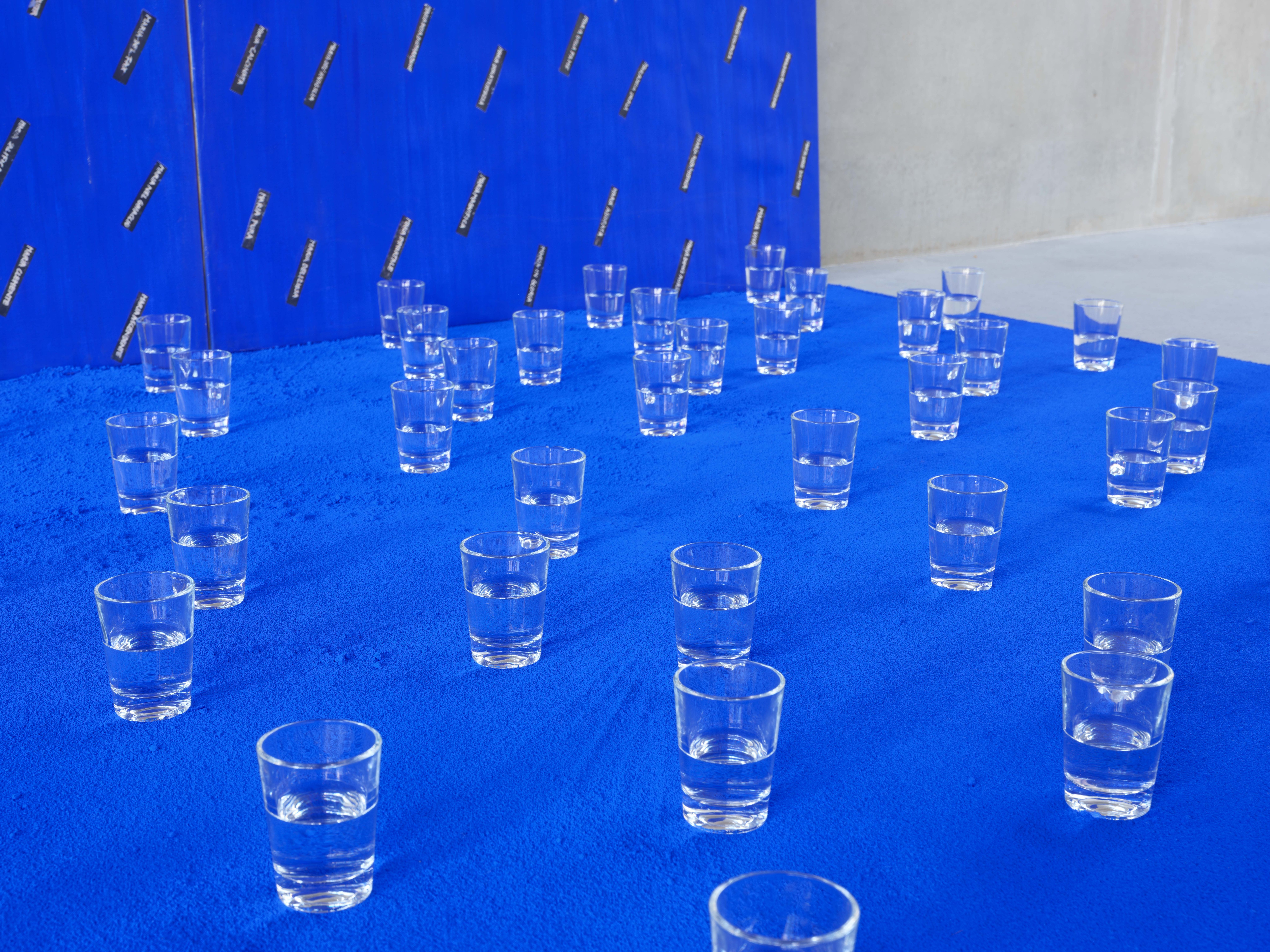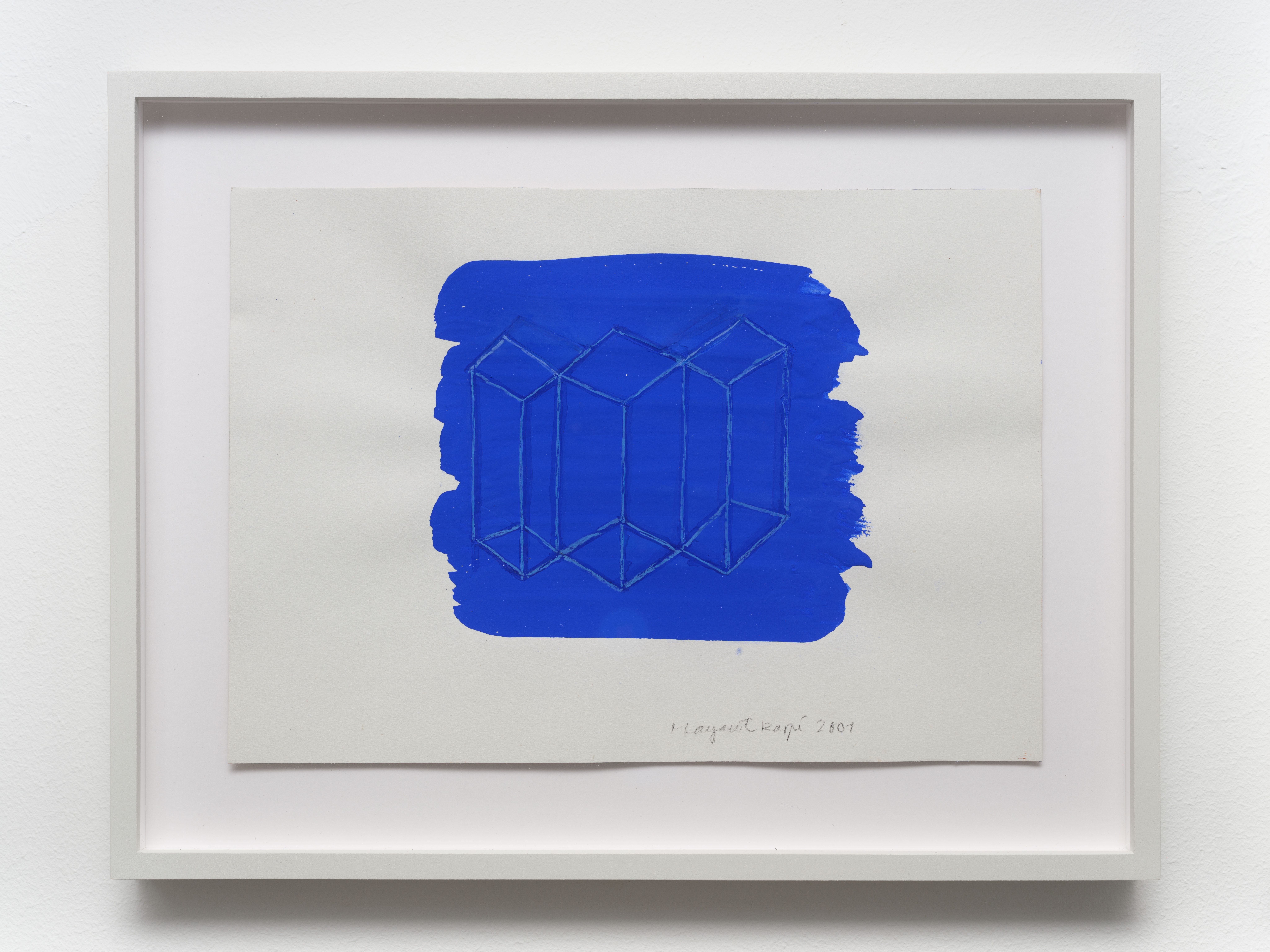 — Margaret Raspé, Karpathos, 2003 Throughout her five-decade career, Margaret Raspé returned persistently to essential questions surrounding her own existence and that of the world around her. Such reflection pointed her towards a deep awareness of interconnectivity, which she aimed to convey through her work. Her installations, performances, photographs, paintings, and drawings function as vehicles to move the viewer towards such a consciousness, which melded the spiritual and political in a simple call to pay attention. Conceived in close collaboration with the artist before her recent death at the age of 90, Elemente is Raspé’s first solo gallery exhibition in Germany, following her highly-lauded and long-overdue retrospective at the Haus am Waldsee and Badischer Kunstverein last year. Elemente refers, on the one hand, to the four classical elements of the universe, which were touchstones for Raspé, as well as the elements that recur throughout her own practice—wool, water, ultramarine blue, Maria as a symbol and a word, overtone chanting, the horizon. Raspé animates associations between these materials and ideas, forming a syntax that is reconfigured with every work and renders each radically mutable and contingent. In Elemente, Raspé’s prescient ecological consciousness comes to the fore, particularly in her emphasis on polluted water as both a call to action and a symbol for the grave consequences of disregarding humanity’s interconnectedness with the environment. In her text Water is No Longer Water, which accompanied her 1990 performance in which she waded into the ink-black Bzura River in Łódź, Poland, Raspé wrote: “today we refer to the present — the past is stored in our genes — the future depends on decisions — which we make from our limited knowledge of this present, based on change that can only be imagined, which belongs to the vision of an open consciousness. We must take action from a place of unrepressed consciousness to form future realities.” Such was the mentality that motivated her work, as she challenged linearity to think cyclically and across systems: her installations, performances or photographs like dispatches of this consciousness she was bent on raising. While the activism undergirding the performance in Łódź, as well as the wool installation in the Enza River in Reggio Emilia, Italy that preceded it in 1989, is more explicit, Raspé’s reflection on water as a medium to broach interdependence and connectivity also extended to her more abstract installations, drawings and photographic works exhibited here. One can imagine her process as a kind of circumambulation, encircling these ideas on both a physical and mental plane in an approach akin to moving around a sacred idol. This circularity is particularly evident in her Augenhöhe, 1988 (Eye Level) series—in which she turned on her own axis to document the panorama of landscapes like the nuclear power plant and tar fields of Brockdorf, or the marshlands of Wewelsfleth. In Schwarze Kanäle, 1983 (Black Channels), a selection of which are presented in Elemente, she replays a flurry of rippling black strokes in a series of thirty compositions compositions, while Kontinuum II (1995), consists of an island of blue shattered glass populated by six wool balls which she likened to celestial bodies. Raspé’s overtone singing over recordings of the sound made by the turning frequencies of Earth, Sun, Moon, Jupiter, Venus, Mars adjusted to the octave of human perception emanates from these wool spheres. In her Marientafel, 1992 (Maria’s Table), strips of silver emblazoned with the many names of Maria against an altar-like oval resemble raindrops caught in the dozens of water cups that populate the half-oval that stretches as if reflected on to the floor. Maria of the Heavens, Maria of the Sea, Maria of the Fire, Maria of the Earth. While the silver pieces have oxidized black with time—a change that Raspé welcomed as part of the work—in their original gleam they created after-images, underscoring Raspé’s interest in probing the boundaries of perception. This major painting, as well as the web of works that comprise Elemente, operate like a nexus of a complex array of references, while maintaining a strange and striking immediacy. As the concerns that drove Raspé remain startlingly urgent, her work takes on renewed relevance. We are proud to present her first posthumous exhibition, which offers just a glimpse of her relentless commitment to "try things out, invent ourselves, and work to find ourselves in the time we are given."