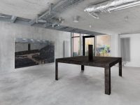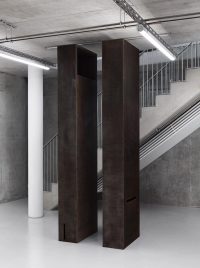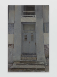 The sculptures and paintings, meanwhile, communicate different theoretical notions through the phenomenological encounter between viewer and artwork. Two pictures of sealed doorways, for example, embody Derrida’s notion of différance – how meaning is not held within a sign but formed through an endless deferral across associated signifiers. The viewer is suspended between opaque images, similar but distinct, and is unable to enter any interior or locate any semantic origin.