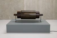 Dora Budor OLD WORLD Ground Floor Dora Budor Terror Terroir, 2023 Sandpaper, paint removal (Lime electric scooter, KOOP overground excess water drainage pipes), glass 76 x 106.7 cm Noah Barker & Dora Budor Orange Film I, 2023 HD video, color, sound 6 minutes 42 seconds Noah Barker & Dora Budor Orange Film II, 2023 HD video, color, sound 4 minutes 7 seconds Basement Dora Budor Autophone (Ear), 2023 Tonewood, sex toys, electronics 45 x 28 x 40 cm Dora Budor Autophone (Cylinder), 2022 Tonewood, sex toys, electronics 39 x 29 x 93 cm Dora Budor Autophone (Box), 2022 Tonewood, sex toys, electronics 11 x 38 x 18 cm Mezzanine Dora Budor Terror Terroir, 2023 Sandpaper, paint removal (Voi electric scooter, Brechtel overground excess water drainage pipes), glass 106.7 x 76 cm Dora Budor Terror Terroir, 2023 Sandpaper, paint removal (Lime electric scooter, Tier electric scooter, Bolt electric scooter, Pollems overground excess water drainage pipes), glass 149.4 x 107.4 cm
